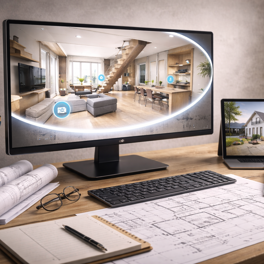 Darüber hinaus entwickeln wir virtuelle Rundgänge, die Projekte frühzeitig erlebbar machen, und begleiten Objekte von der ersten Idee bis zur vollständig durchgeplanten Ausarbeitung. Dabei arbeiten wir mit studierten Architekten zusammen und stellen sicher, dass gestalterischer Anspruch und technische Präzision gleichermaßen berücksichtigt werden.